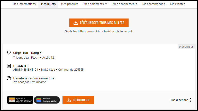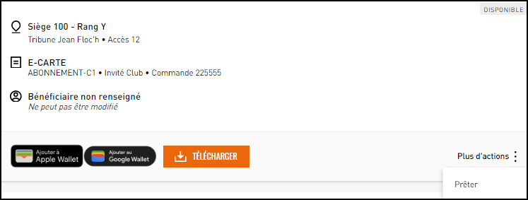 Si vous souhaitez prêter votre abonnement pour un match, vous avez encore la possibilité de télécharger le E-billet de la rencontre sur le site billetterie.